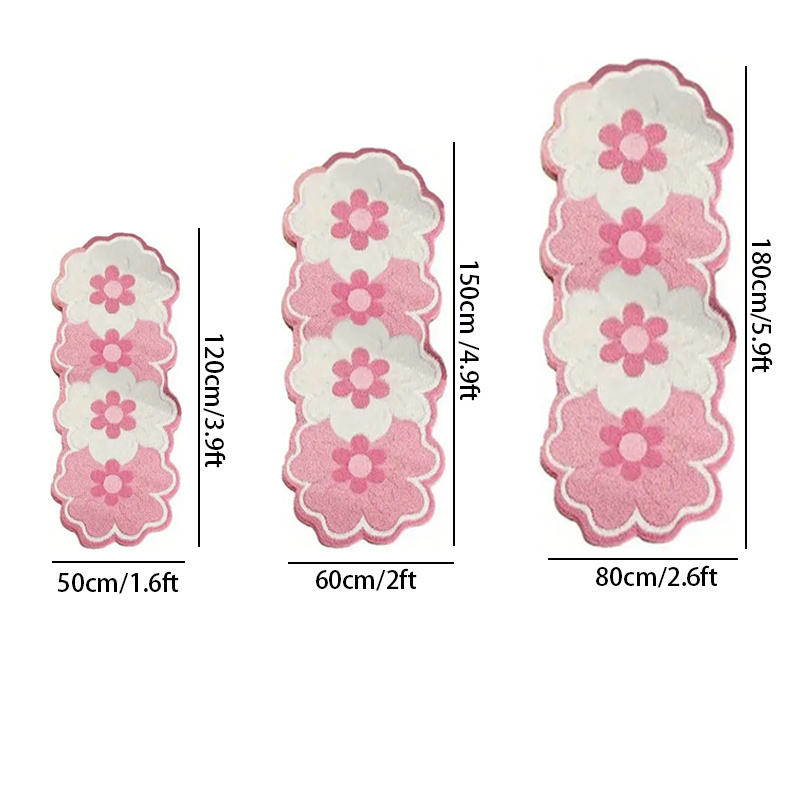 1pc Plush Soft Pink & Green Irregular Flower Shaped Mat - Large Oval-like Bedside Mat