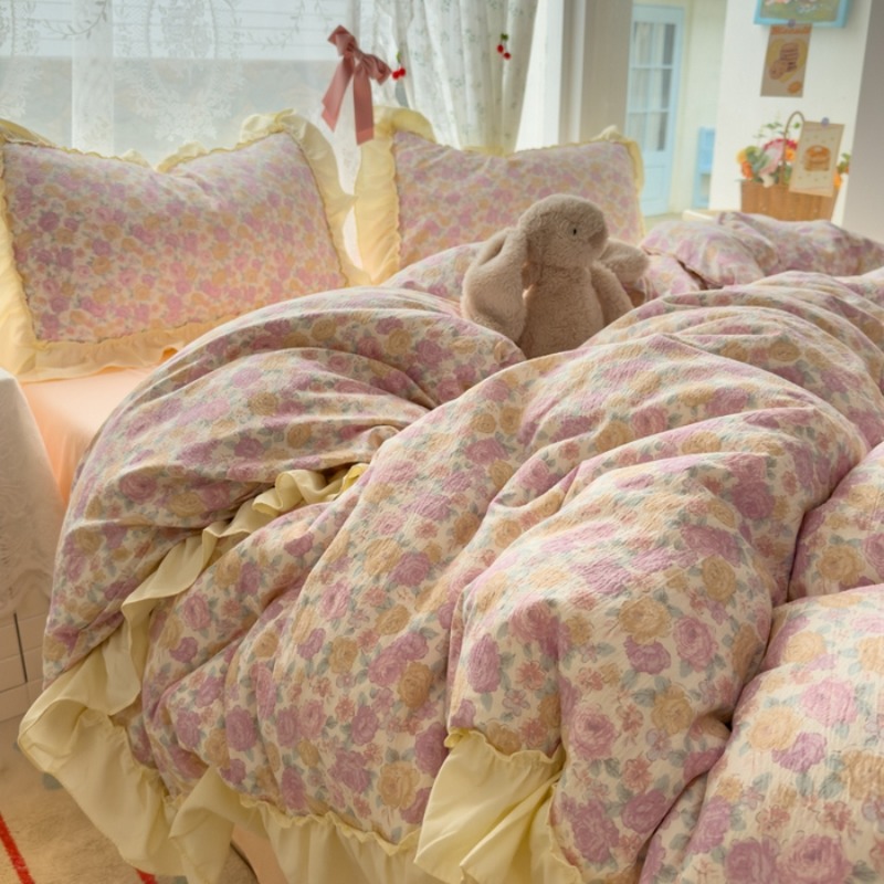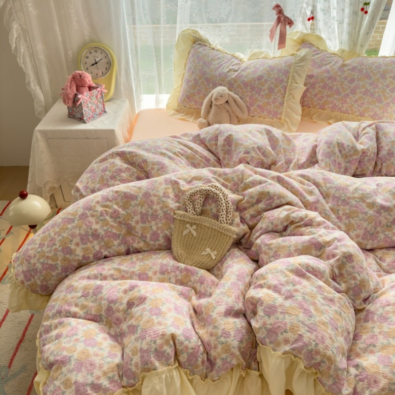 4pcs Bed Sheet Set, Trendy Small Floral American Lace Bedding Set