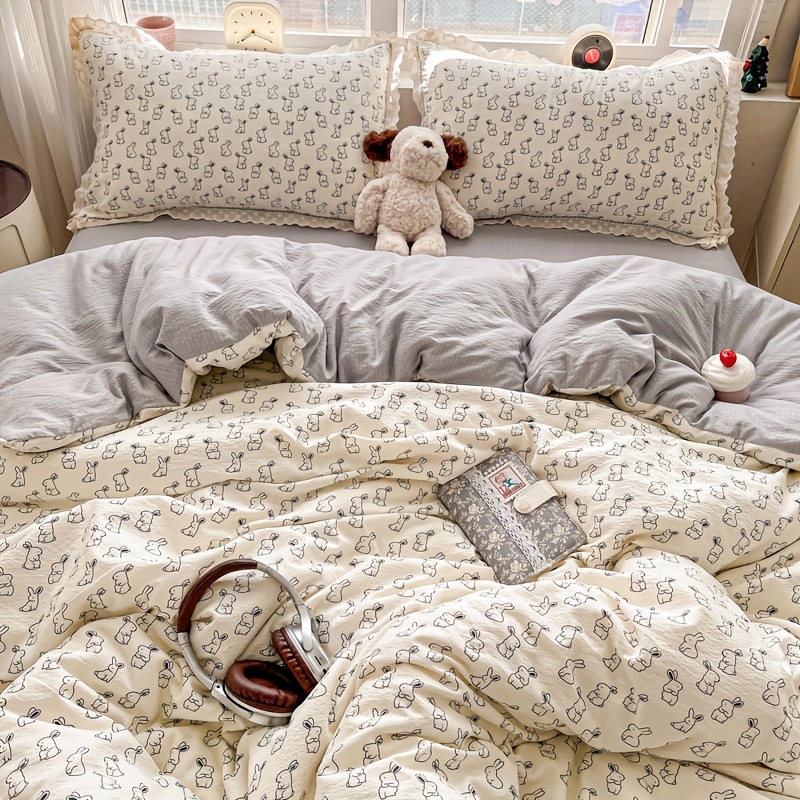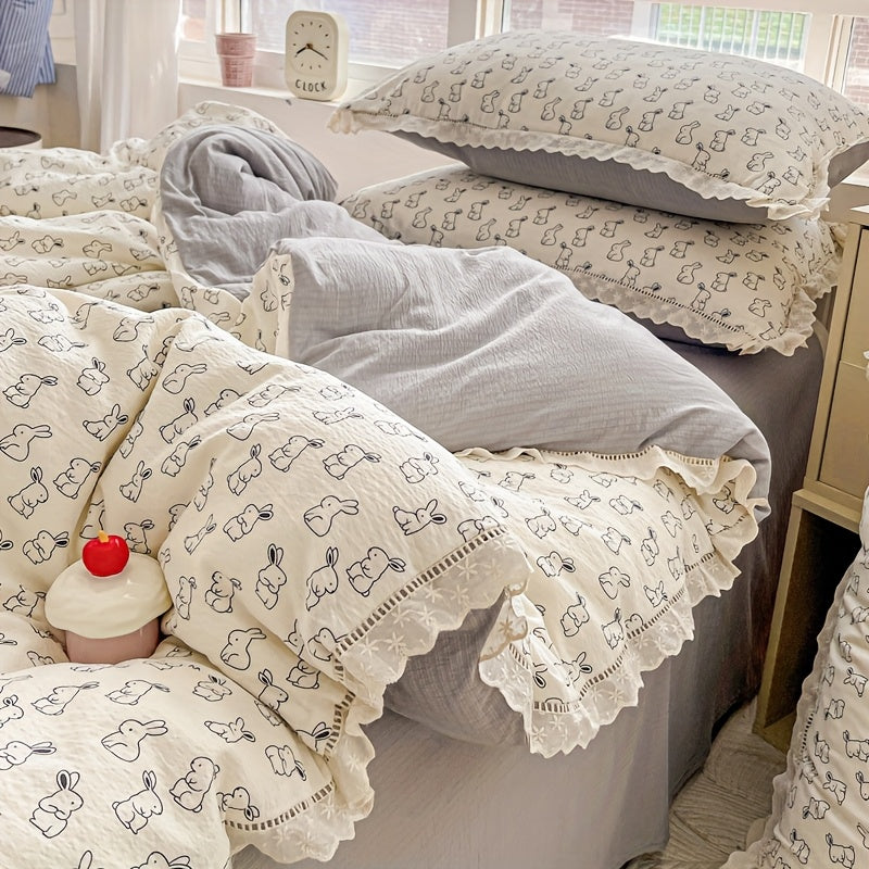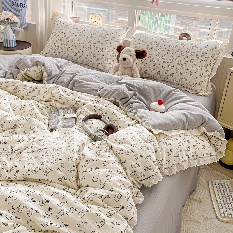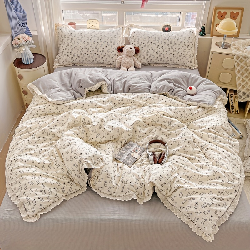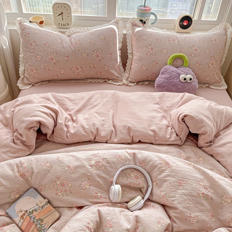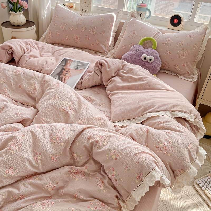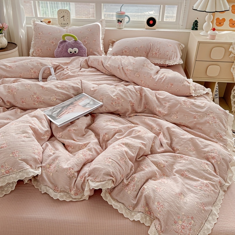4pcs Floral Lace Set, Pleated Sheer Four-Piece Set, New Light Beige-Friendly Kit