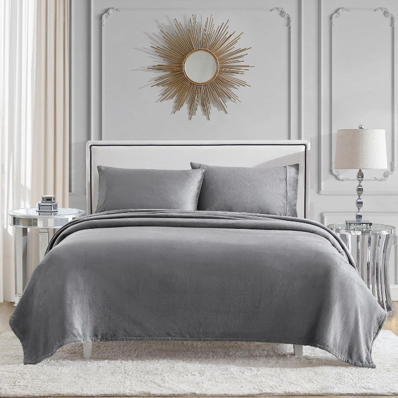 Four-piece bedding setPlush Grey Full Size 4pcs Sheet Set Soft and Cozy BeddingFour-piece bedding set